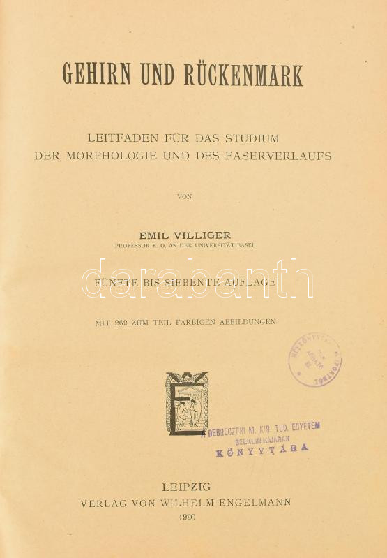 Emil Villige: Gehrin und Rückenmark. Leipzig, 1920, Wilhelm Engelmann.... https://www.darabanth.com/hu/464-Gyorsarveres/464.0/Konyvek/Konyvek-Termeszettudomany-medicina~2000088/Emil-Villige-Gehrin-und-Ruckenmark-Leipzig-1920-Wilhelm-Engelmann-Kopott-egeszvaszon-kotesben~II3129648
