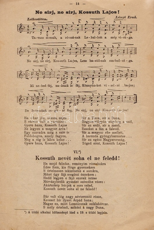 Iskolai szavalás céljára összeállÃtott, hazafias vers- és dalgyűjtemény, oldalszámozáson belülii kottákkal, néhány szövegközti illusztrációval. Néhány oldalon széljegyzetek, néhány oldal foltos, példányunk fűzése laza.