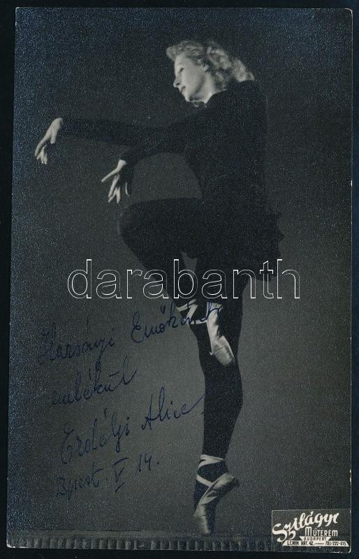 Leírás: Erdélyi Alice (1928-?) táncosnő aláírása fotón