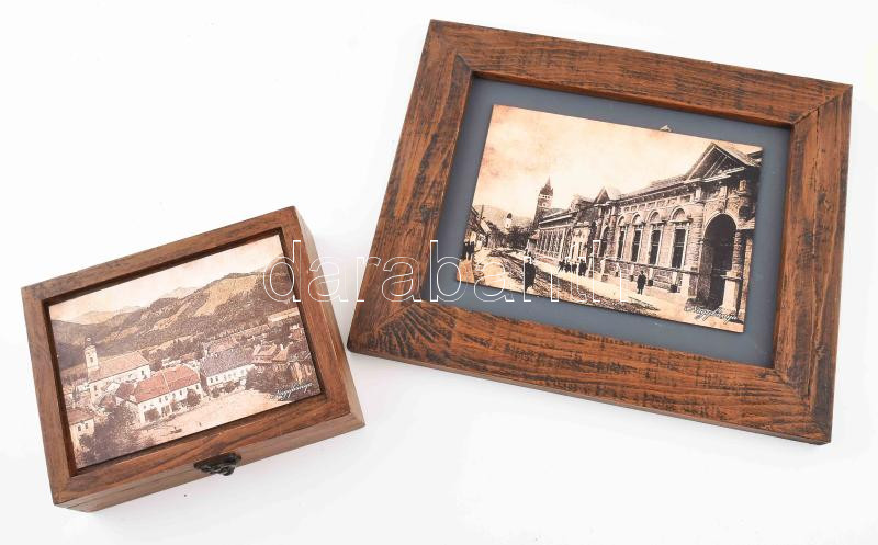Leírás: 2 darab Nagybánya témájú dísztárgy. Kép, doboz, h: 20-34 cm