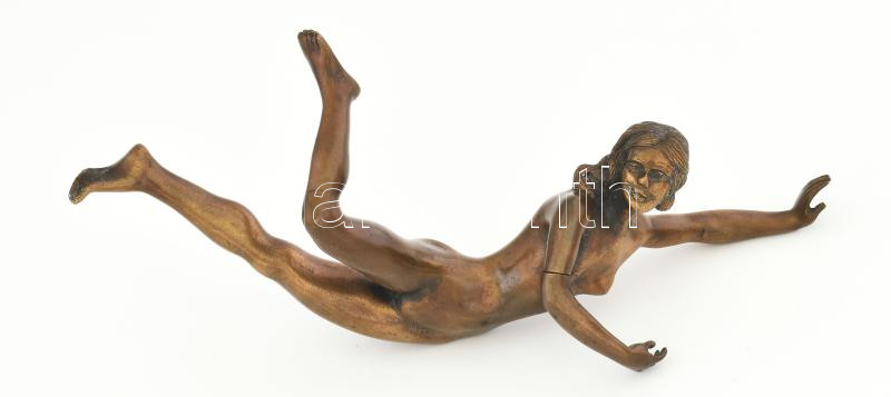 Leírás: Bronz női akt asztaldísz, egyik keze mozgatható, h: 30 cm