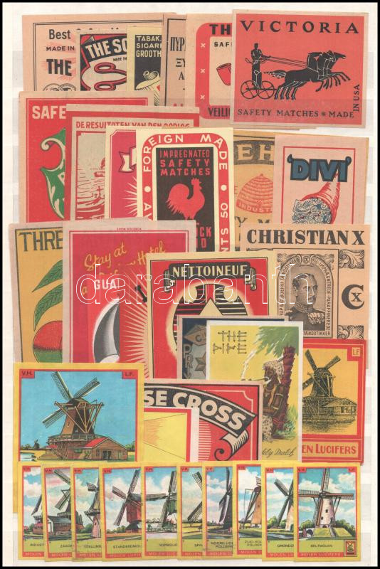 Leírás: 10 db normál méretű gyufacímke és 25 db közepes méretű gyufacímke