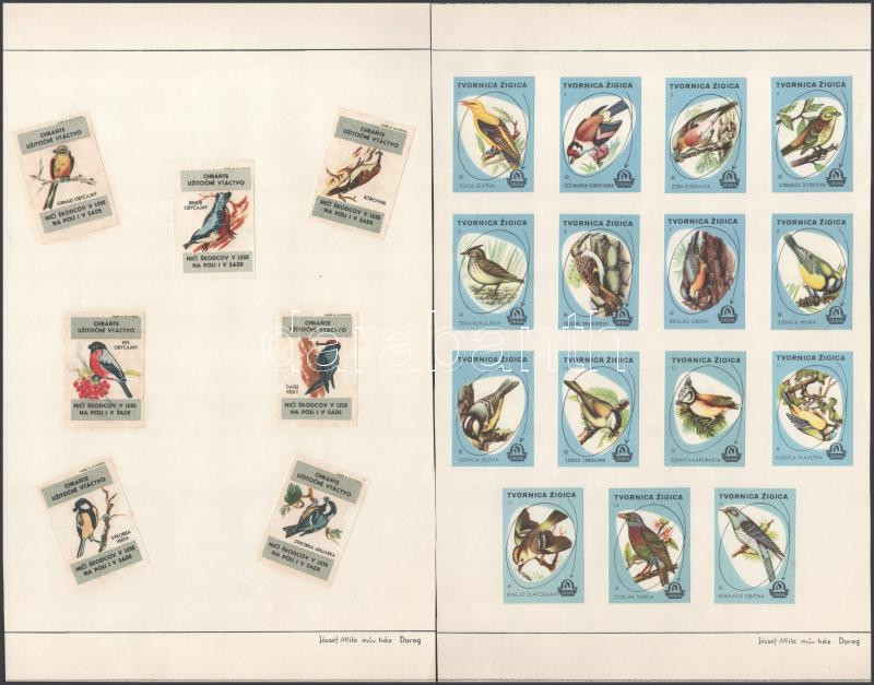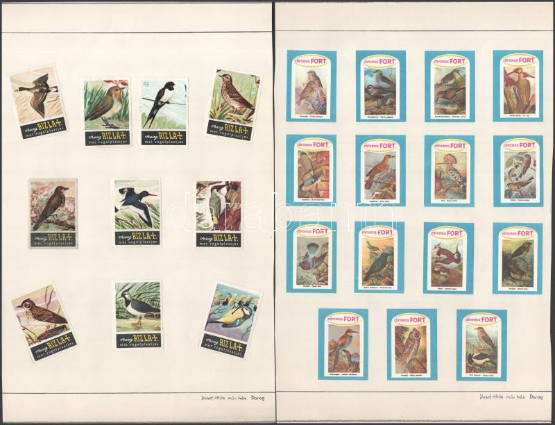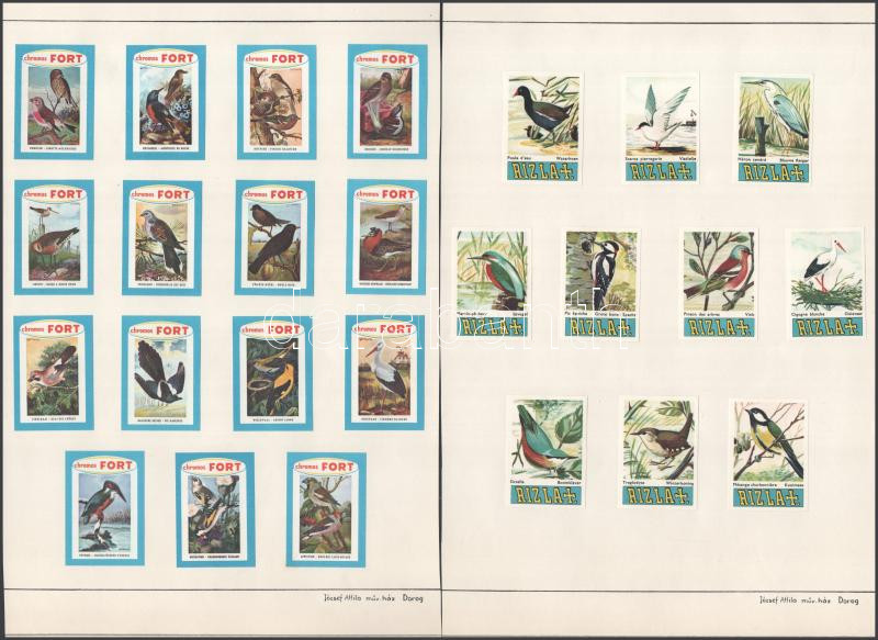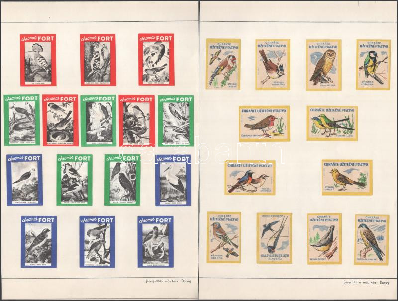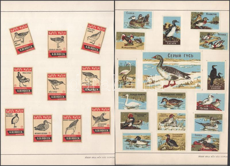 Leírás: 173 db gyufacímke, külföldi madár sorozatok bélyegragasztóval lapokon
