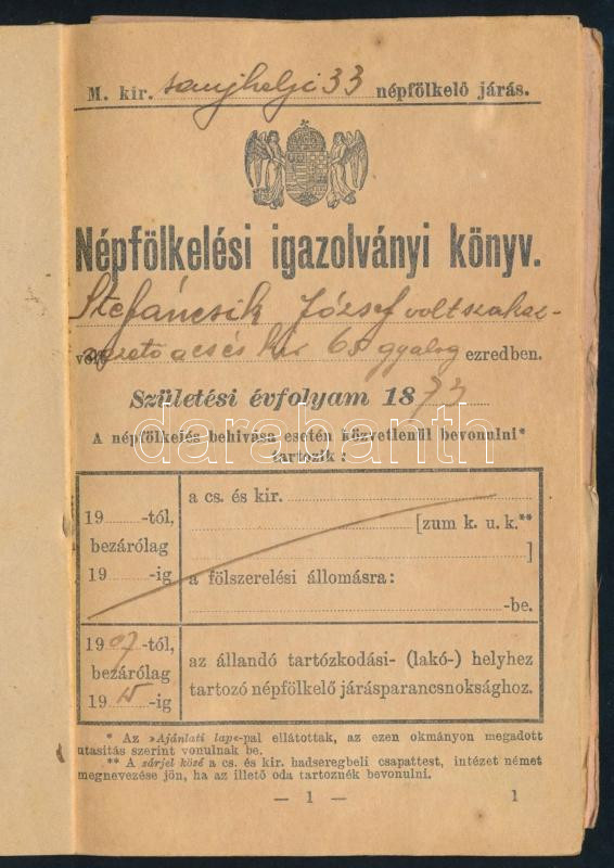 https://www.darabanth.com/hu/464-Gyorsarveres/464.0/Mutargy-papirregiseg-egyeb/Militaria~2000092/1908-1909-Nepfolkelesi-igazolvany-M-kir-satoraljaujhelyi-33-nepfolkelo-jaras-Stefancsik~II3126174