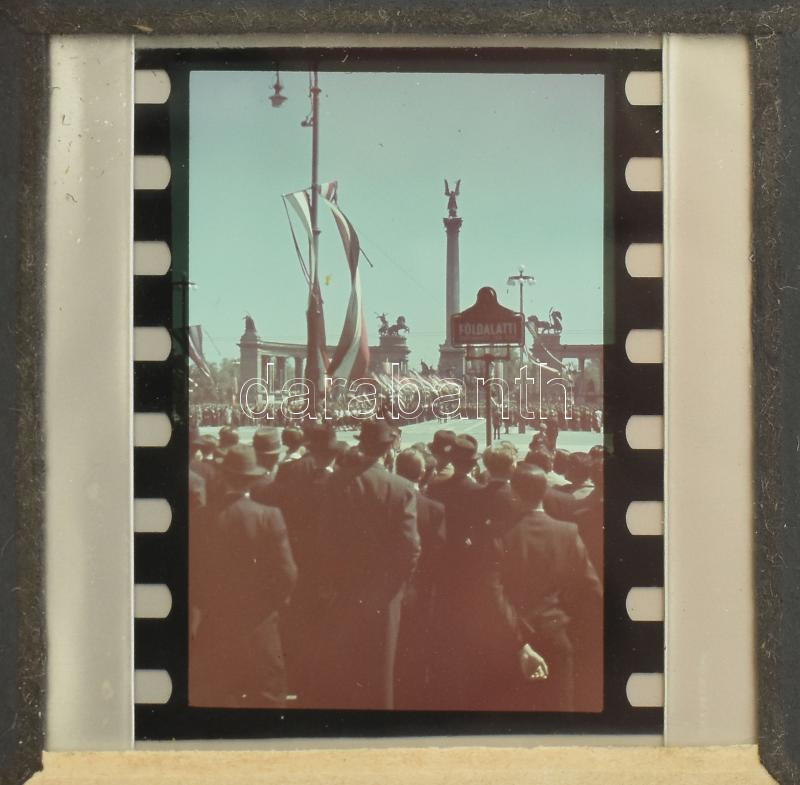 Leírás: cca 1940 Katonai ünnepség a Hősök terén, színes Agfacolor diapozitív