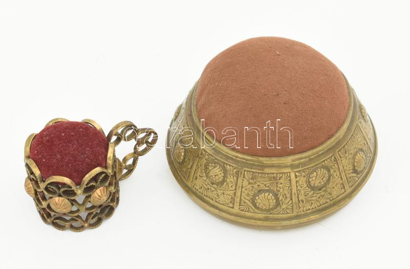 Leírás: 2 darab antik tűpárna, d: 6-10 cm