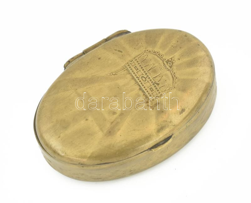 Szandrik korona díszítéses réz szelence, jelzett, 5x3,5 cm https://www.darabanth.com/hu/464-Gyorsarveres/464.0/Mutargy-papirregiseg-egyeb/Mutargyak-antikvitas~1000008/Szandrik-korona-disziteses-rez-szelence-jelzett-5x3-5-cm~II3127654