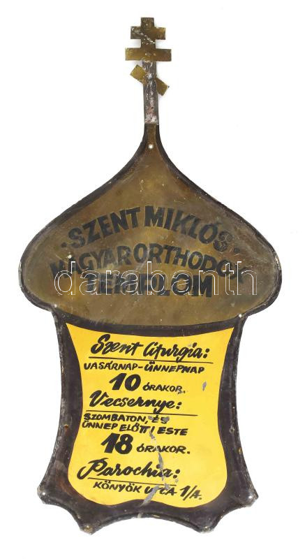Leírás: Szent Miklós Magyar Orthodox Templom fém közlőtábla. Kopással, 64x32 cm