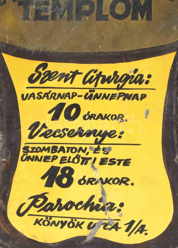 Szent Miklós Magyar Orthodox Templom fém közlőtábla. Kopással, 64x32 c... https://www.darabanth.com/hu/464-Gyorsarveres/464.0/Mutargy-papirregiseg-egyeb/Mutargyak-antikvitas~1000008/Szent-Miklos-Magyar-Orthodox-Templom-fem-kozlotabla-Kopassal-64x32-cm~II3126538