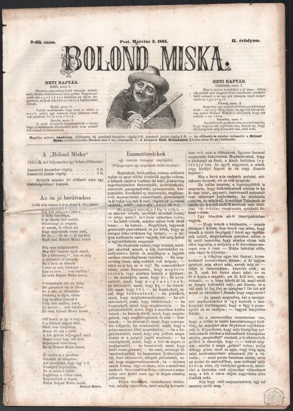 1861 Bolond Miksa élclap II. évfolyam 9-13. szám, politikai karikatúrá... https://www.darabanth.com/hu/464-Gyorsarveres/464.0/Mutargy-papirregiseg-egyeb/Nyomtatvanyok~1500012/1861-Bolond-Miksa-elclap-II-evfolyam-9-13-szam-politikai-karikaturakkal~II3111499