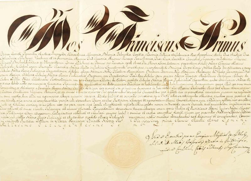 Leírás: 1814 Latin nyelvű ügyvédi oklevél, felzetes viaszpecséttel