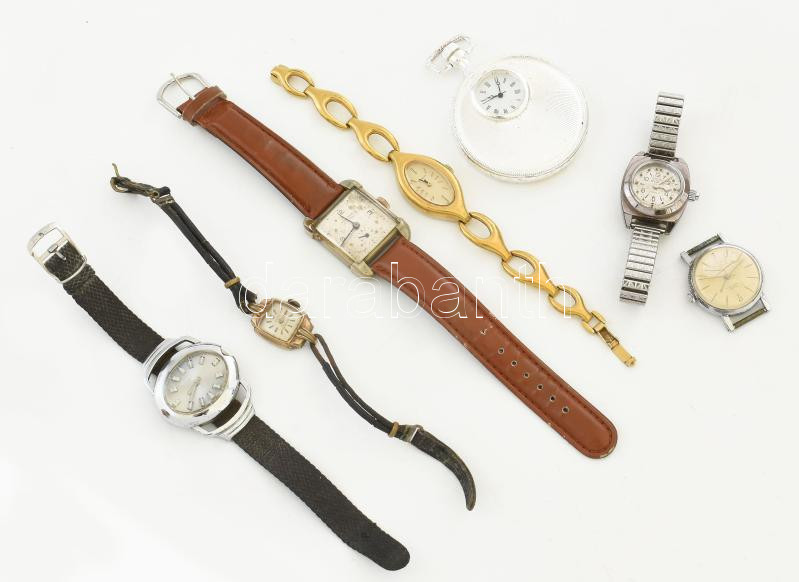 Leírás: 7 db kézi felhúzós kar és zsebóra, mind működik