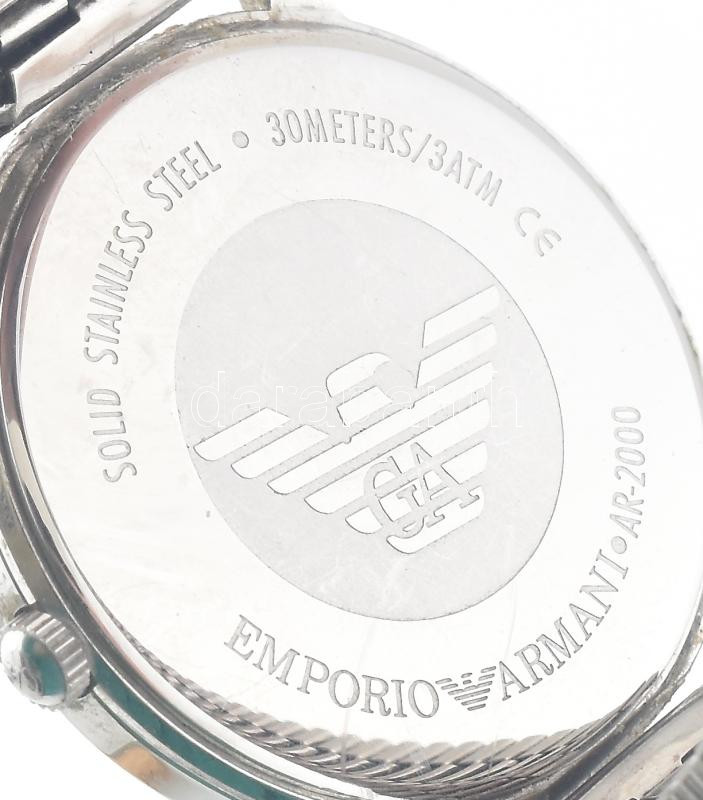 Leírás: Emporio Armani férfi karóra, vízálló (30m / 3ATM), fém szíjjal, jó állapotban, d: 34 mm. Feltehetőleg elemcserére szorul.