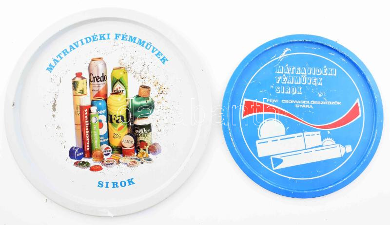 Mátravidéki Fémművek Sirok 2 darab fémtálca, kopott, d: 26-33 cm https://www.darabanth.com/hu/464-Gyorsarveres/464.0/Mutargy-papirregiseg-egyeb/Reklam~1500001/Matravideki-Femmuvek-Sirok-2-darab-femtalca-kopott-d-26-33-cm~II3128812