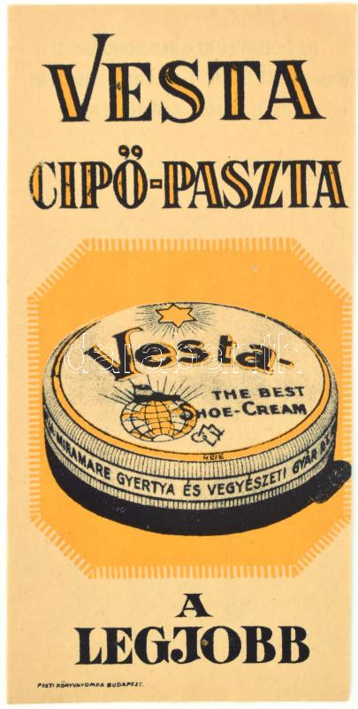 cca 1927 Vesta cipőpaszta számolócédula, hátoldalán datált jegyzékkel https://www.darabanth.com/hu/464-Gyorsarveres/464.0/Mutargy-papirregiseg-egyeb/Reklam~1500001/cca-1927-Vesta-cipopaszta-szamolocedula-hatoldalan-datalt-jegyzekkel~II3129884