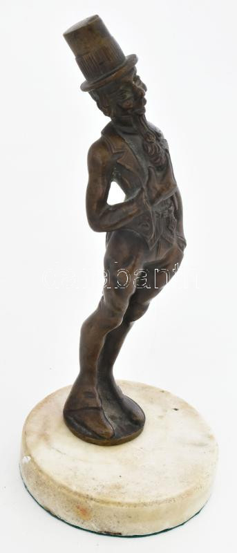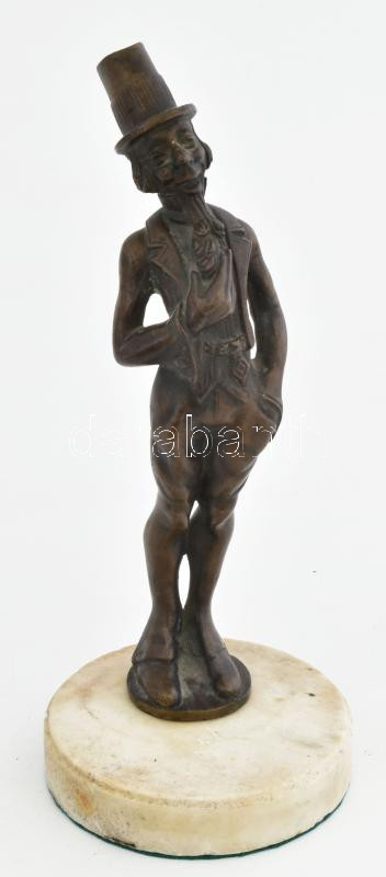 Leírás: Ismeretlen szobrász: Férfi kalapban. Bronz, márvány talapzaton, jelzés nélkül, m: 23 cm