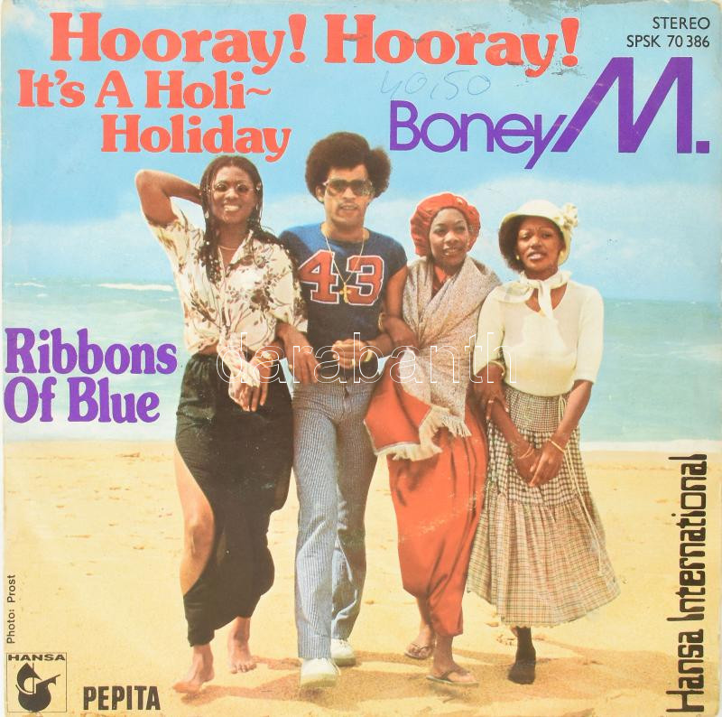 Boney M. - Hooray! Hooray! It's A Holi-Holiday. Vinyl, 1979. https://www.darabanth.com/hu/464-Gyorsarveres/464.0/Mutargy-papirregiseg-egyeb/Zenei-bakelit-lemezek-CD-k-DVD-k~1500011/Boney-M-Hooray-Hooray-Its-A-Holi-Holiday-Vinyl-1979~II3124689