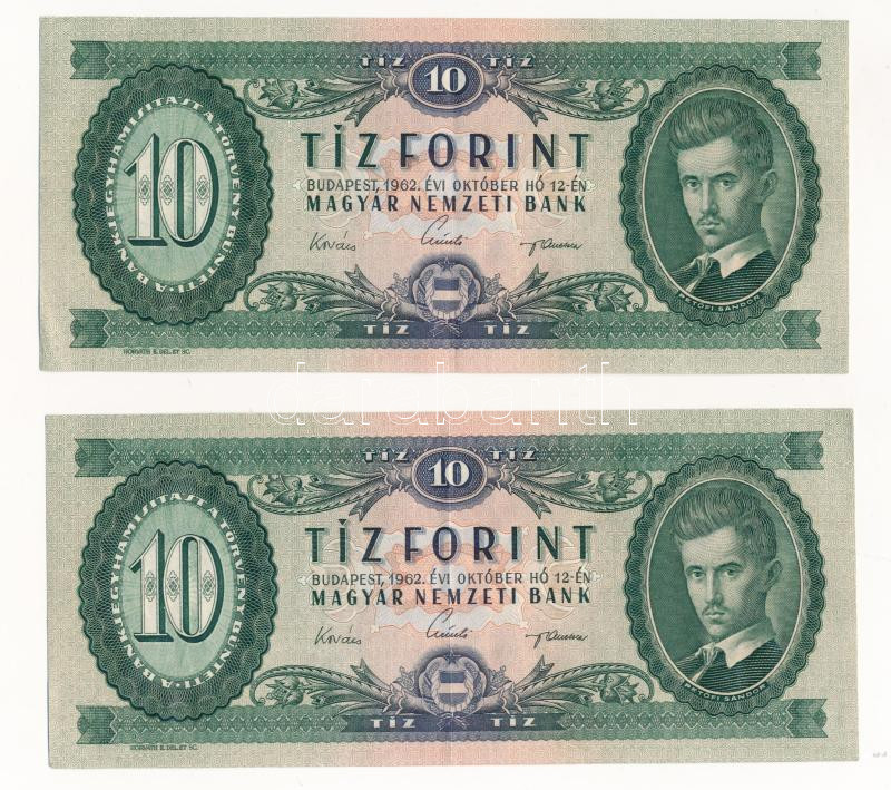 Leírás: 1962. 10Ft (2x) sorszámkövetők "A 874 155235 - A 874 155236" T:XF