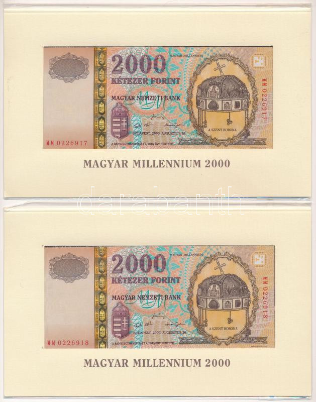 Leírás: 2000. 2000Ft "Millennium" bontatlan díszcsomagolásban (2x) sorszámkövetők T:UNC Adamo F56A