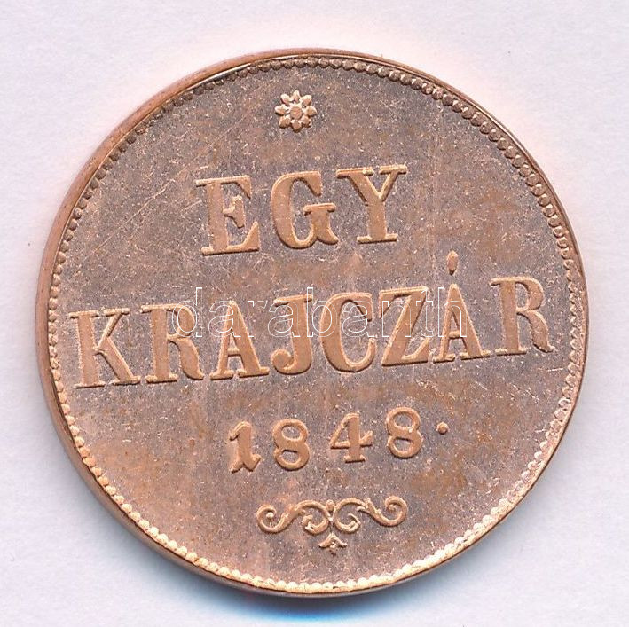 Adamo B1 https://www.darabanth.com/hu/464-Gyorsarveres/464.0/Numizmatika/Magyar-es-magyar-verdejelu-fem-es-ezustpenzek~500009/1848-1kr-Cu-T-AU-Adamo-B1~II3125252