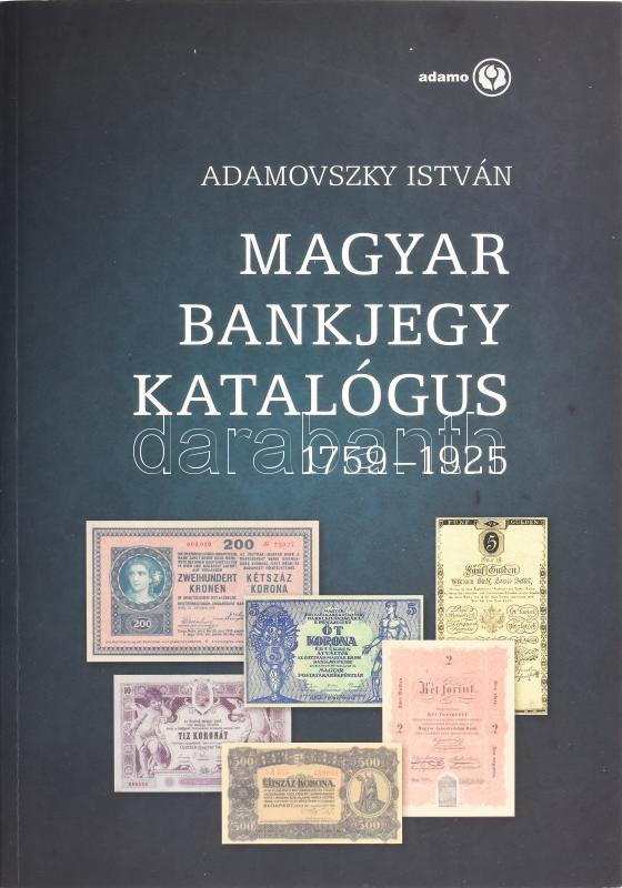 Adamovszky István: Magyar bankjegy katalógus 1759-1925. Budapest, 2009... https://www.darabanth.com/hu/464-Gyorsarveres/464.0/Numizmatika/Numizmatikai-irodalom~500003/Adamovszky-Istvan-Magyar-bankjegy-katalogus-1759-1925-Budapest-2009-Elso-kiadas-uj-allapotban~II3108703