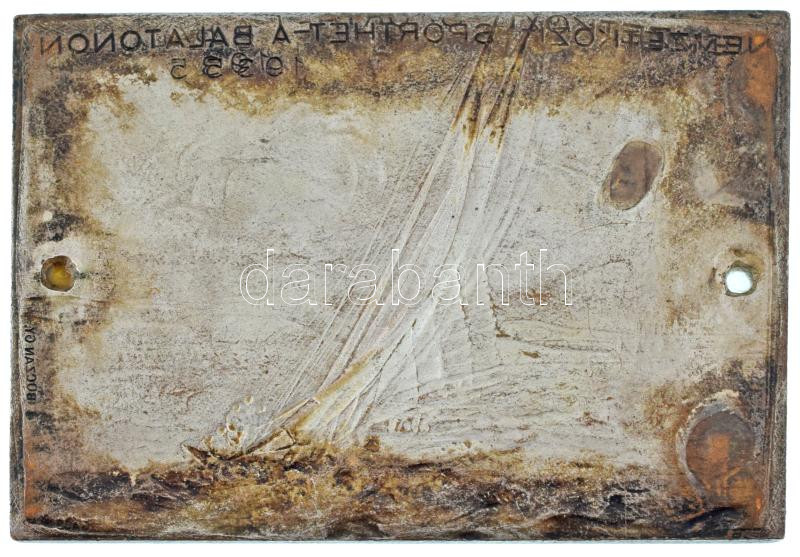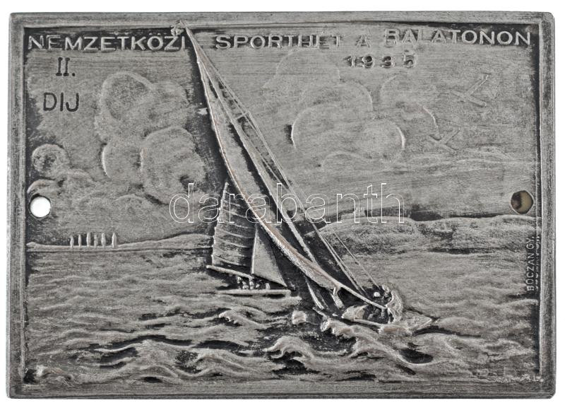 Leírás: Gácsik Lajos (1905-1981) 1935. "Nemzetközi Sporthét a Balatonon" ezüstözött bronz plakett "II. díj" gravírozással, "Boczán Gy" gyártói jelzéssel (49x69mm) T:XF a széleken rögzítésnyomokkal