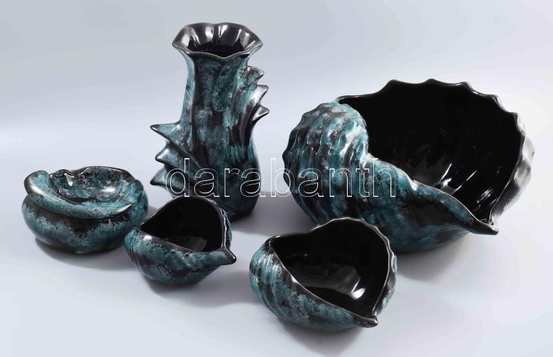 Leírás: 5 darabos tengeri formavilágot idéző márványmintás asztali szett. Jó állapotban, jelzés nélkül, h: 36 cm