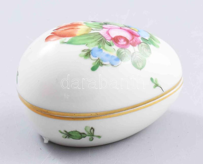 Leírás: Herend kézzel festett tojás bonbonier. Jelzett, hibátlan, h: 7,5 cm