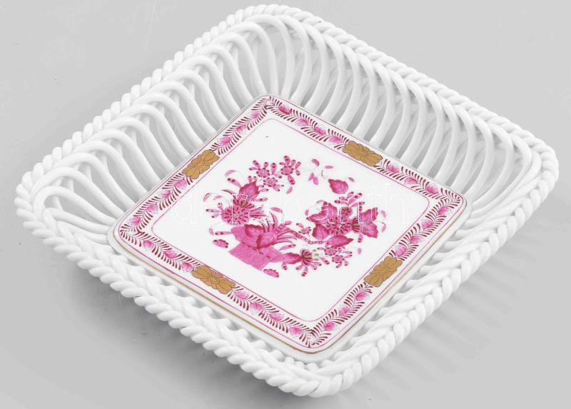 Leírás: Herendi Indiai kosár purpur mintás fonatos kínáló. Jelzett, hibátlan, 15,5x15,5 cm