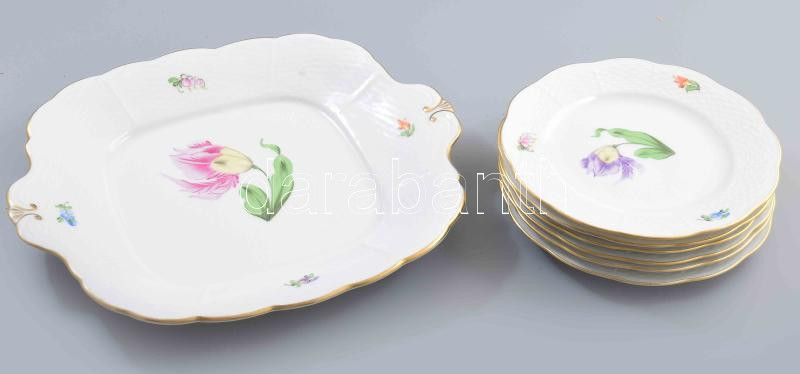 Leírás: Herendi Kitty mintás süteményes készlet. Jelzett, hibátlan, 27,5x24,5 cm, tálak d: 16,5 cm