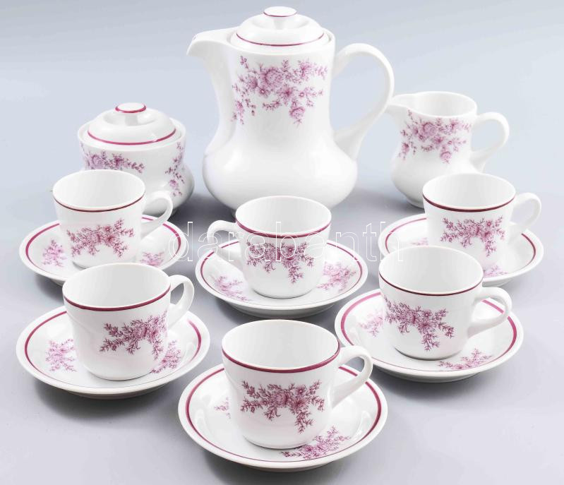 Leírás: Hollóházi lila virágmintás kávés készlet. Jelzett, minimális kopottsággal, teljes.