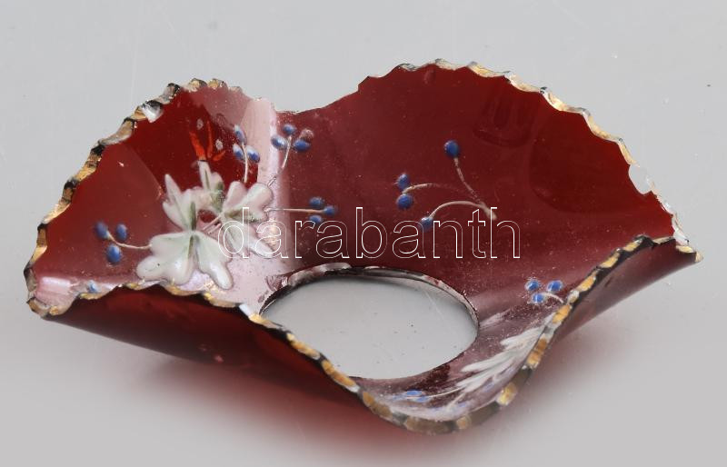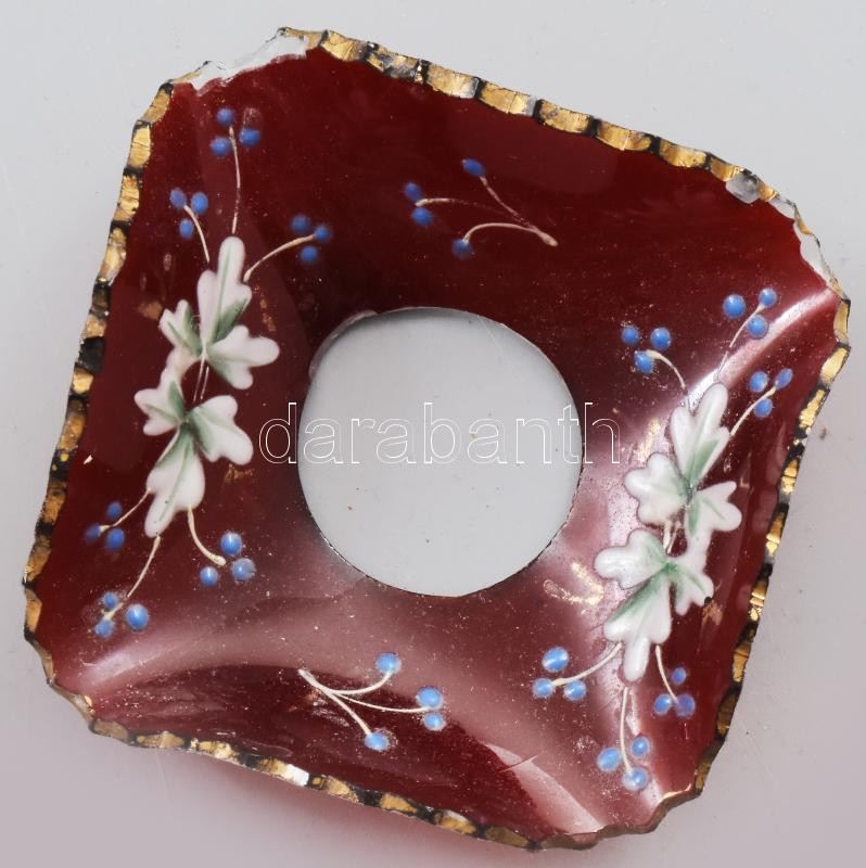 Antik gyertyatartó szerelék. Zománcfestett üveg, sérült, 8x8 cm https://www.darabanth.com/hu/464-Gyorsarveres/464.0/Porcelan-keramia-uveg/Uvegtargyak~1000007/Antik-gyertyatarto-szerelek-Zomancfestett-uveg-serult-8x8-cm~II3110353