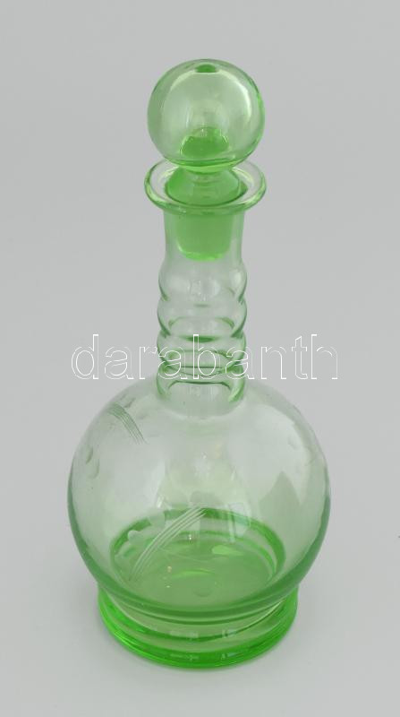 Leírás: cca 1920 Uránnal színezett italos üveg. Jelzés nélkül, hibátlan, m: 22,5 cm