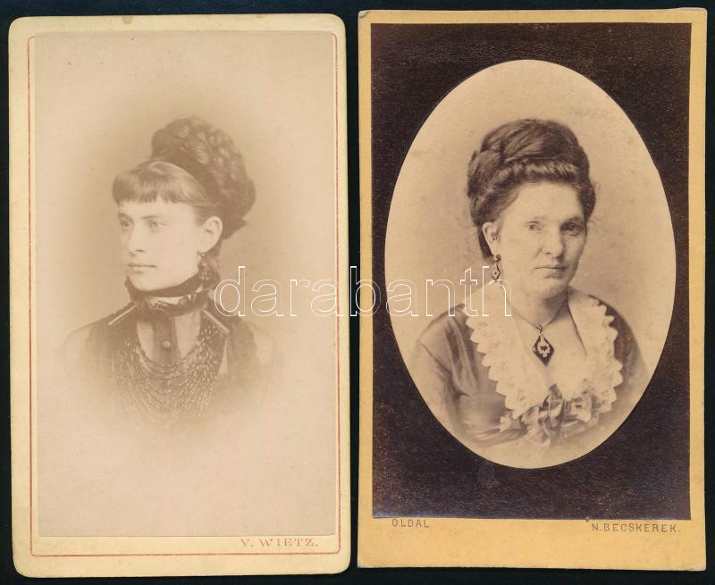 cca 1880-90 2 db női portré, keményhátú fotó Oldal István nagybecskere... https://www.darabanth.com/hu/465-Gyorsarveres/465.0/Fotomuveszet/Foto~500027/cca-1880-90-2-db-noi-portre-kemenyhatu-foto-Oldal-Istvan-nagybecskereki-es-C-Wietz-Tyrnau~II3131998