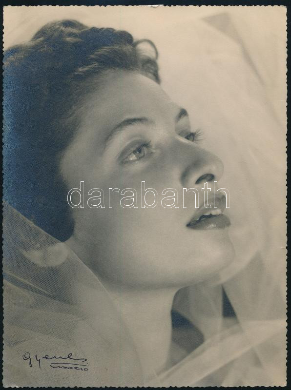 cca 1940-1950 Juan Gyenes, eredetileg Gyenes János (1912-1995) magyar származású madridi fotóművész eredeti, jelzett felvétele (női portré), 23,5x17,5 cm