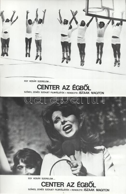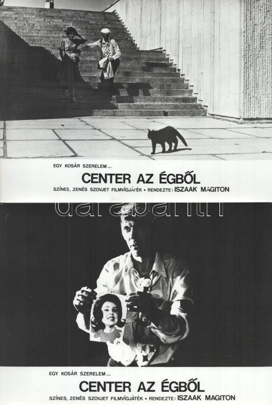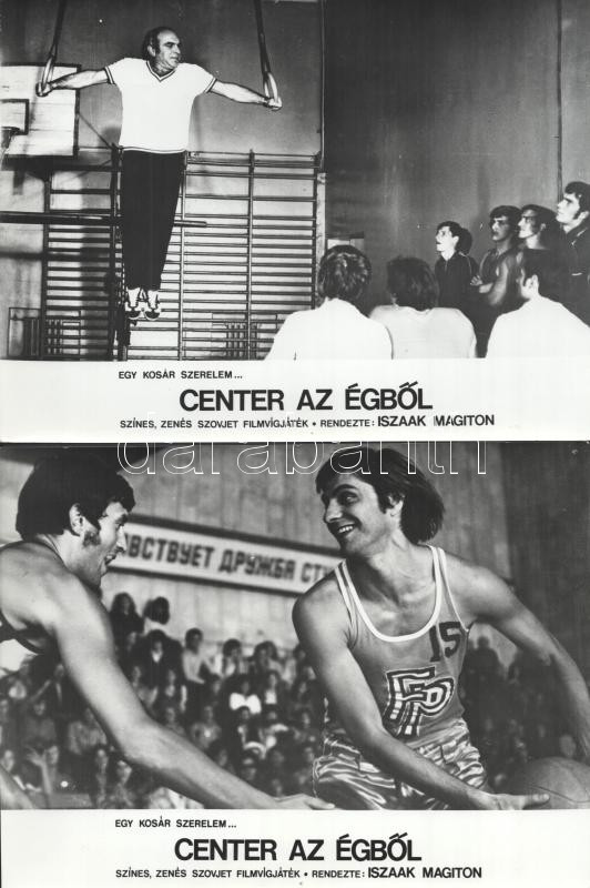 cca 1989 előtti ,,Center az égből" című szovjet film jelenetei és szereplői, 16 db vintage produkciós filmfotó (vitrinfotó, lobbyfotó) ezüst zselatinos fotópapíron, a használatból eredő (esetleges) kisebb hibákkal, 18x24 cm