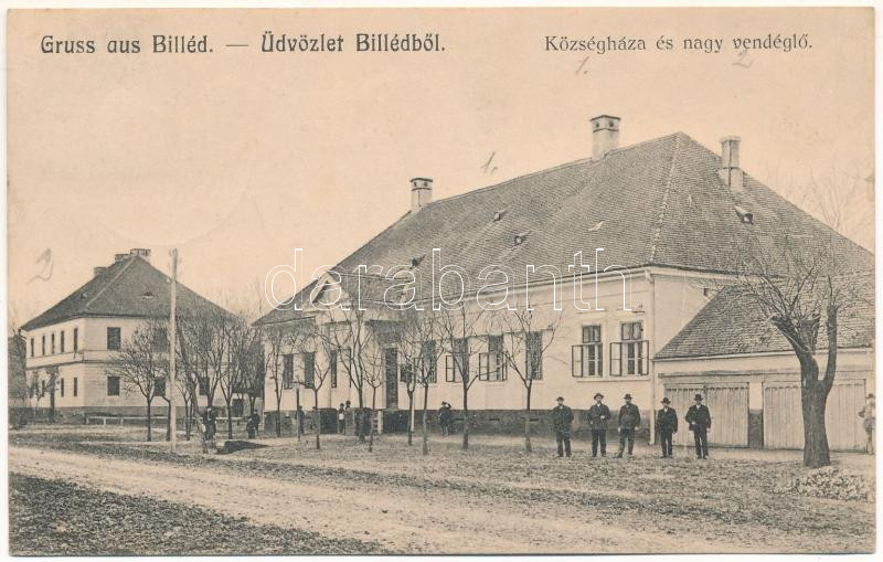 1910 Billéd, Biled; Községháza és nagy vendéglő. A. Weiser Photograpis... https://www.darabanth.com/hu/465-Gyorsarveres/465.0/Kepeslapok/Erdely~1500006/1910-Billed-Biled-Kozseghaza-es-nagy-vendeglo-A-Weiser-Photograpisches-Atelier-town-hall-~II3135351