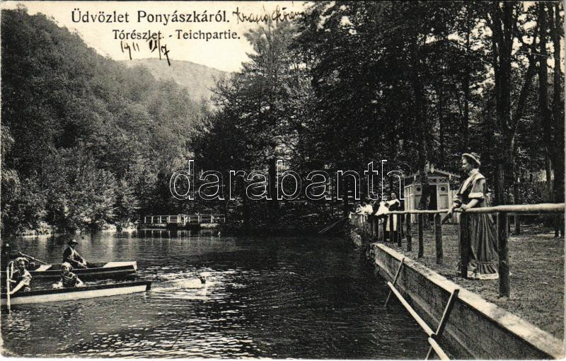 1911 Ponyászka, Poneasca (Bozovics, Bozovici); Tó részlet, csónakázók.... https://www.darabanth.com/hu/465-Gyorsarveres/465.0/Kepeslapok/Erdely~1500006/1911-Ponyaszka-Poneasca-Bozovics-Bozovici-To-reszlet-csonakazok-Weisz-Felix-kiadasa-~II2948653