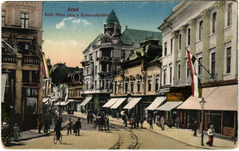 1917 Arad, Atzél Péter utca, Bohus palota, magyar zászlók, üzletek. Ke... https://www.darabanth.com/hu/465-Gyorsarveres/465.0/Kepeslapok/Erdely~1500006/1917-Arad-Atzel-Peter-utca-Bohus-palota-magyar-zaszlok-uzletek-Kerpel-Izso-kiadasa-str~II2958870