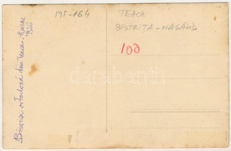 Leírás: 1926 Teke, Tekendorf, Teaca; Biserica Greco Ortodoxa / Ortodox templom / Orthodox church. photo (fl)