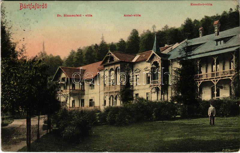 1911 Bártfafürdő, Bardejovské Kúpele, Bardiov, Bardejov; Dr. Blumenfeld, Antal és Erzsébet villa. Eschwig Ede és Hajts kiadása, Hajts Kornél felvétele / villas (EK)