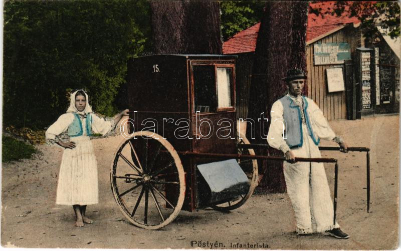 Leírás: 1914 Pöstyén, Pistyan, Piestany; Infanteristák, Fürdőkocsi (tolókocsi) / Curhotel Infanterist / spa carriage, folklore (Rb)