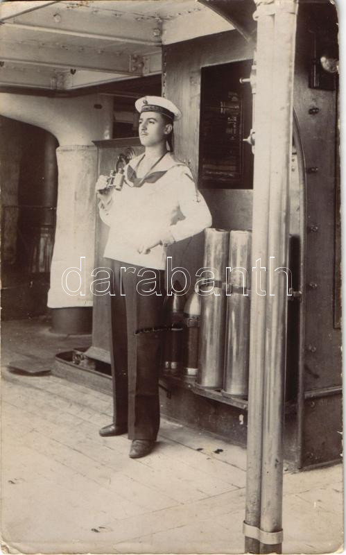 Domokos Béla az SMS Kaiserin Elisabeth Osztrák-Magyar Haditengerészetvédett cirkálójának matróza / K.u.K. Kriegsmarine Matrose / Austro-Hungarian Navy mariner. photo (EK)