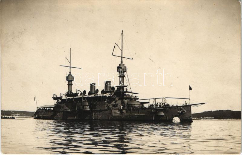 Leírás: SMS Kaiserin und Königin Maria Theresia osztrák-magyar haditengerészet páncélos cirkáló / K.u.K. Kriegsmarine / Austro-Hungarian Navy SMS Kaiserin und Königin Maria Theresia armored cruiser. Fot. Alois Beer, Schrinner Pola 1915. (EM)