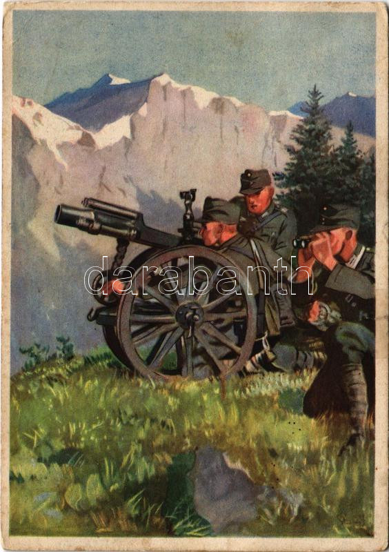 Minenwerfer im Gebirge. Die Deutsche Wehrmacht. Erste Folge: Das Heer Karte 7. / Második világháborús német katonai művészlap / WWII German military art (Rb)