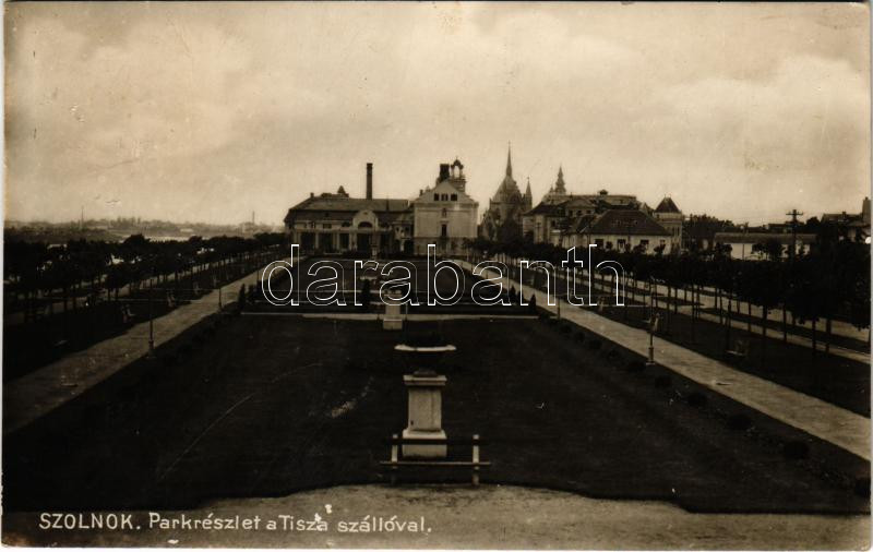 1930 Szolnok, park részlet a Tisza szállóval (ázott / wet damage) https://www.darabanth.com/hu/465-Gyorsarveres/465.0/Kepeslapok/Magyarorszag~1500005/1930-Szolnok-park-reszlet-a-Tisza-szalloval-azott-wet-damage~II3135332