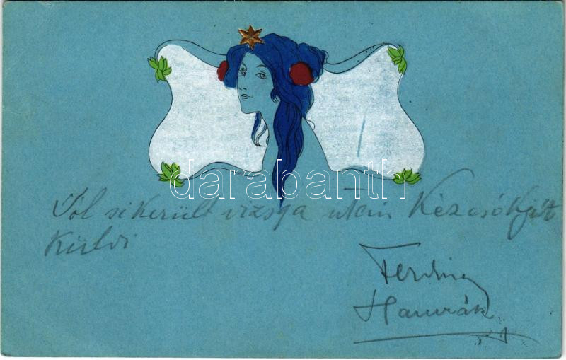 1903 Szecessziós hölgy / Art Nouveau lady (EK) https://www.darabanth.com/hu/465-Gyorsarveres/465.0/Kepeslapok/Muveszlapok~1500072/1903-Szecesszios-holgy-Art-Nouveau-lady-EK~II3132495