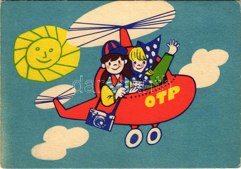 OTP - Rendszeres takarékosság, gondtalan, vidám nyaralás. Képzőművészeti Alap / Hungarian bank advertisement s: Macskássy János (EB)