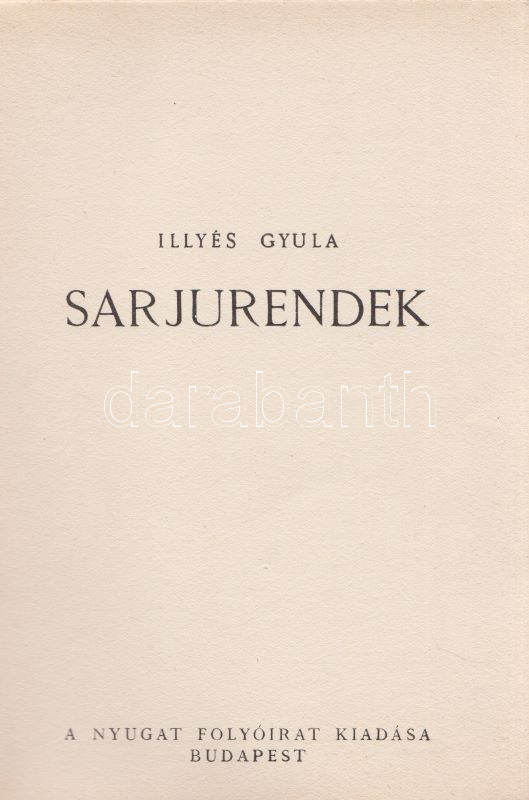 Budapest, [1931]. Nyugat folyóirat kiadása (Nagy A. ny.) 76 + [4] p. + errata. Egyetlen kiadás.