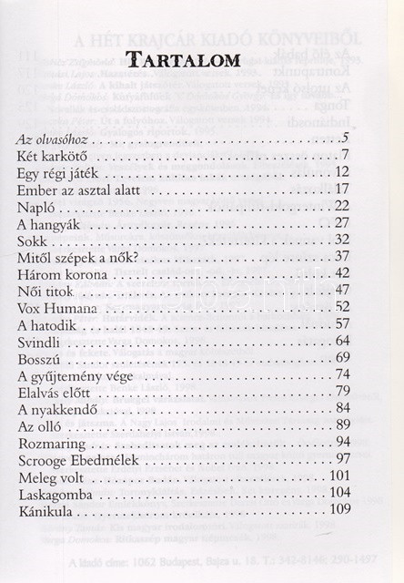 Budapest, 1998. Hét Krajcár Kiadó (Pénzes Károly ny., Solymár). 188 + [4] p. Egyetlen kiadás.